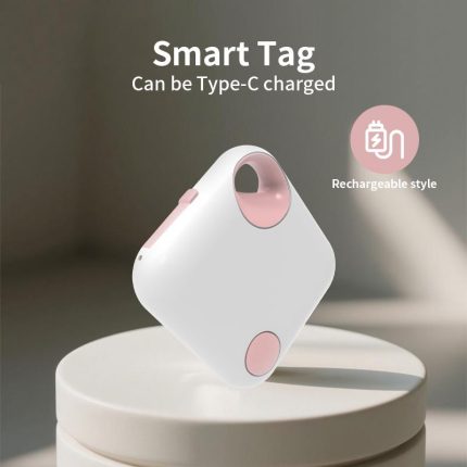 Smart Tag – Square ( white, Pink) Mini Smart Locator for Keys, Pets, and Cars